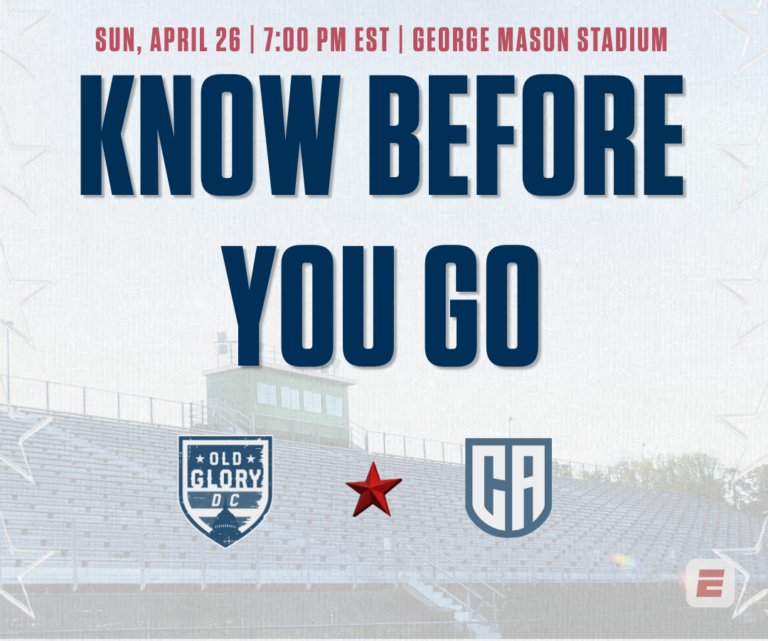 Old Glory DC hosts the California Legion on Sunday, April 26 at 7:00 PM ET at George Mason Stadium. This is Welcome to Fairfax & Student Night! Get your
